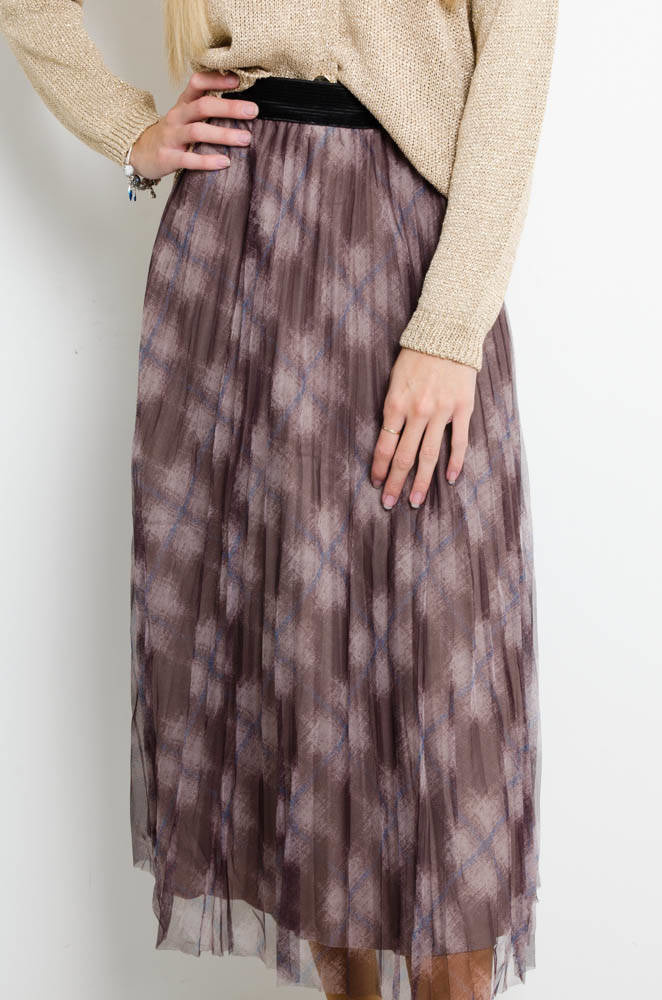 BRĄZOWA DWUSTRONNA SPÓDNICA Z TIULEM