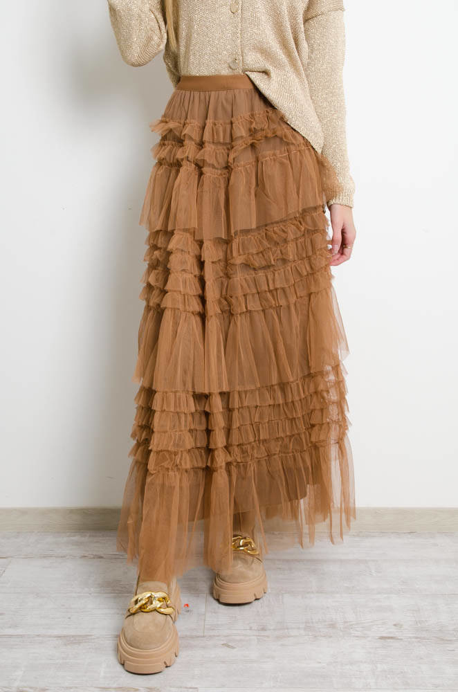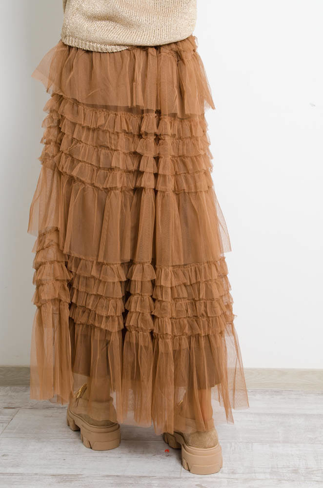 DŁUGA BRĄZOWA SPÓDNICA TIULOWA