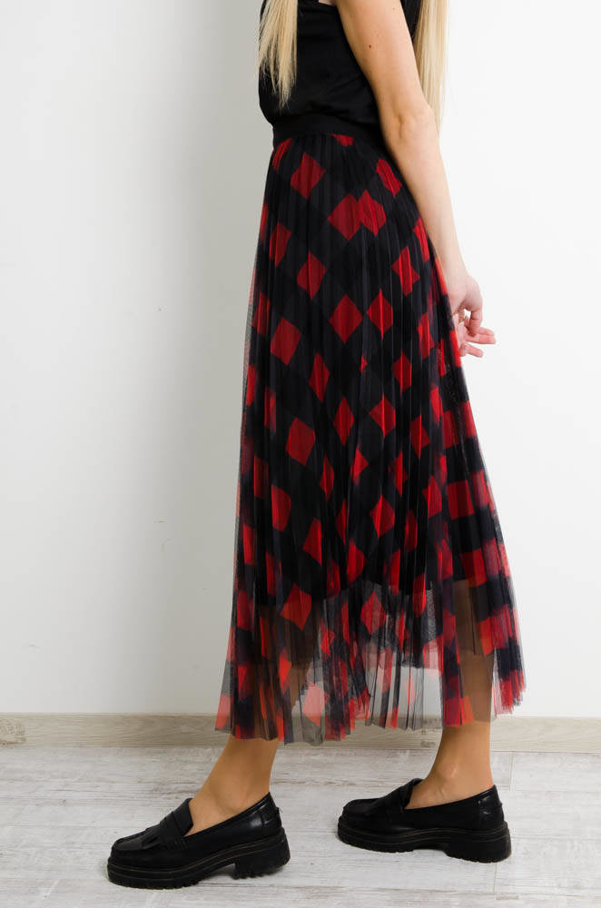 CZERWONA SPÓDNICA TIULOWA W KRATĘ