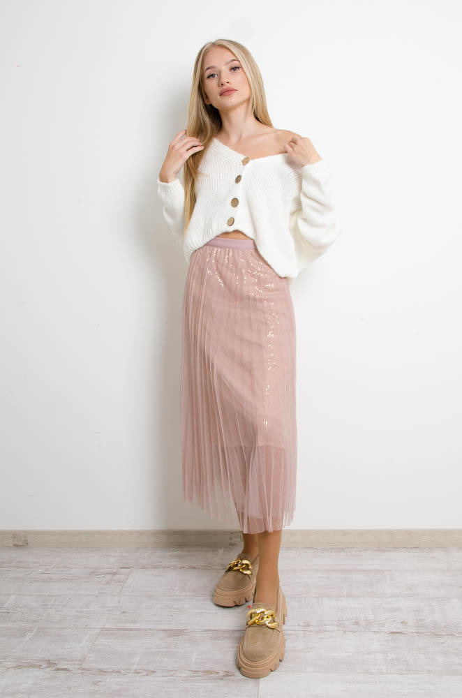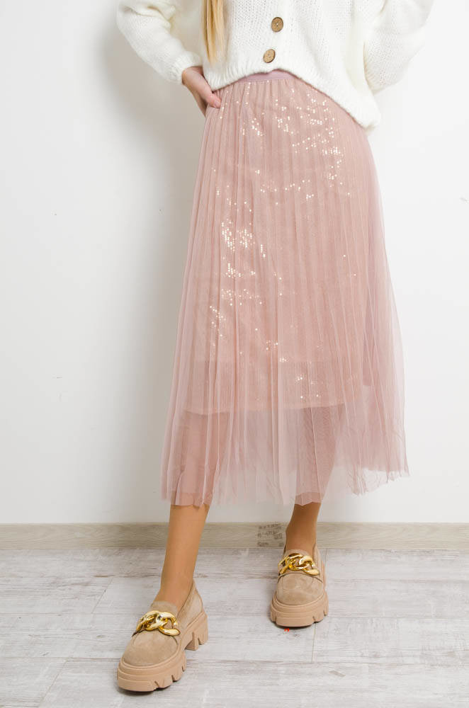 RÓŻOWA SPÓDNICA TIULOWA Z CEKINAMI