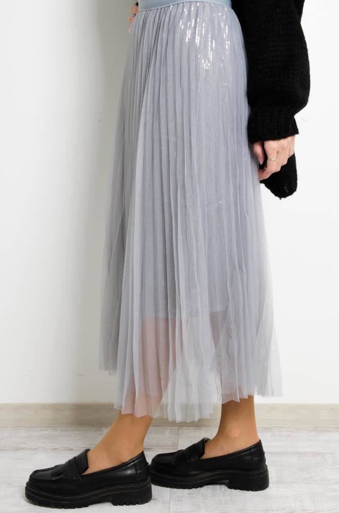 SZARA SPÓDNICA TIULOWA Z CEKINAMI