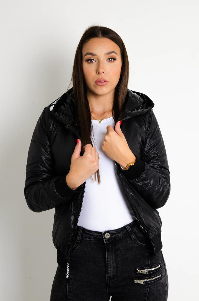 CZARNA KURTKA WINYLOWA-DWUSTRONNA