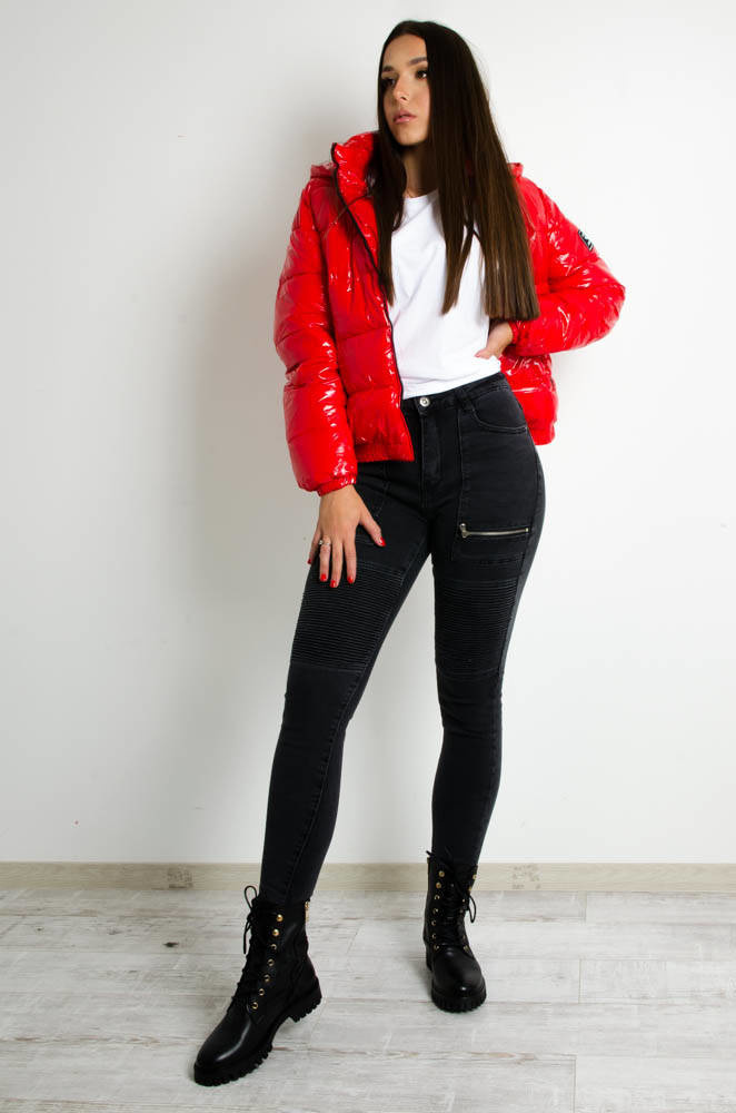 Jeansy z funkcją stretchu, który trzyma i modeluje talię, uda i pośladki oraz zachowuje kształt jeansów. Wysoki stan, rozporek na suwak i guzik. Obcisłe nogawki z ozdobnymi suwakami i przeszyciami.