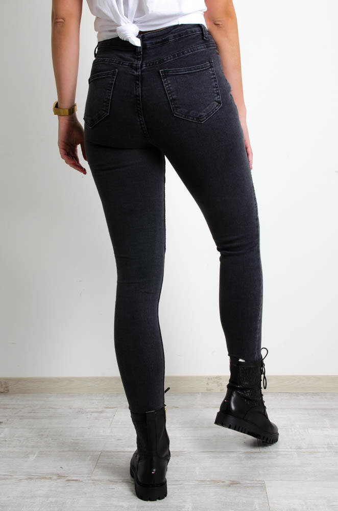 CIEMNO-SZARE SPODNIE JEANSOWE Z ZAMKAMI NA UDACH