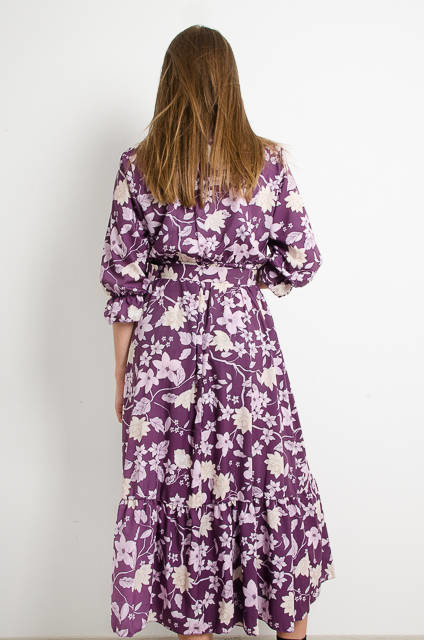FIOLETOWA SUKIENKA MAXI W KWIATY Z PASKIEM