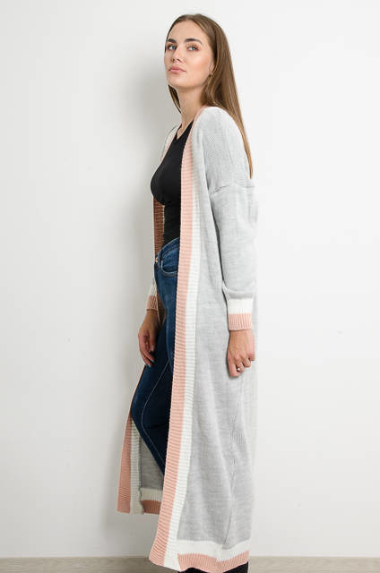 SZARY DŁUGI KARDIGAN SWETER