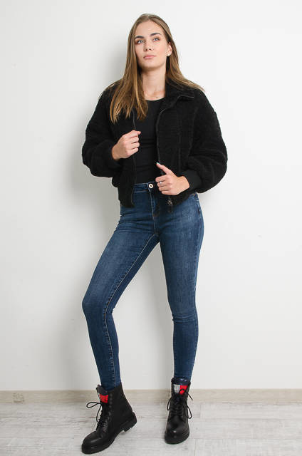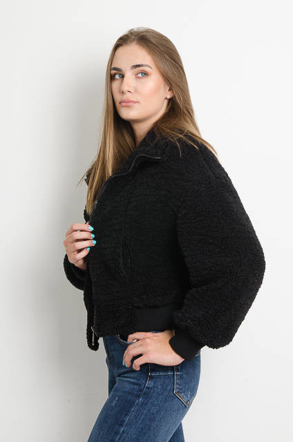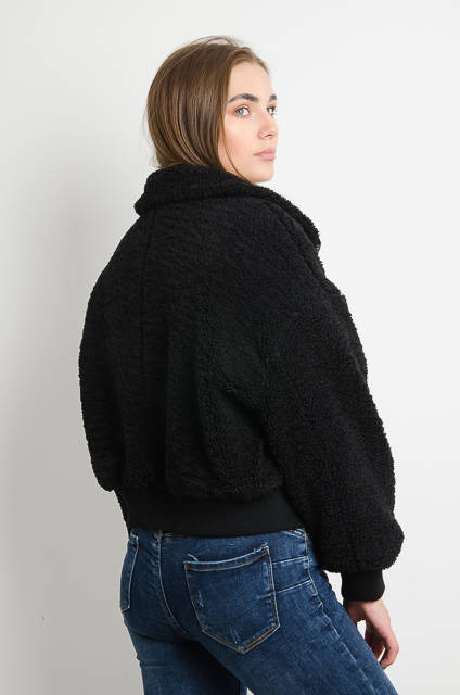CZARNA KURTKA BOMBERKA Z KOŻUSZKIEM