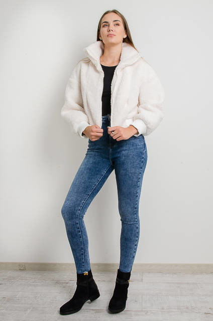 BIAŁA KURTKA BOMBERKA Z KOŻUSZKIEM.