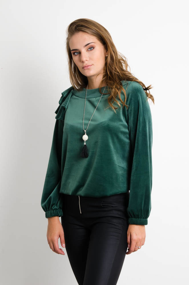 ZIELONA BLUZA WELUROWA Z FALBANKĄ