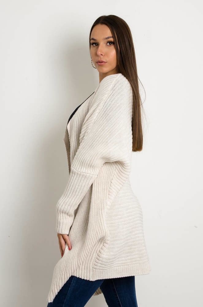 BEŻOWA DŁUGA NARZUTKA SWETERKOWA- KARDIGAN