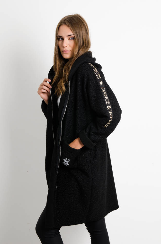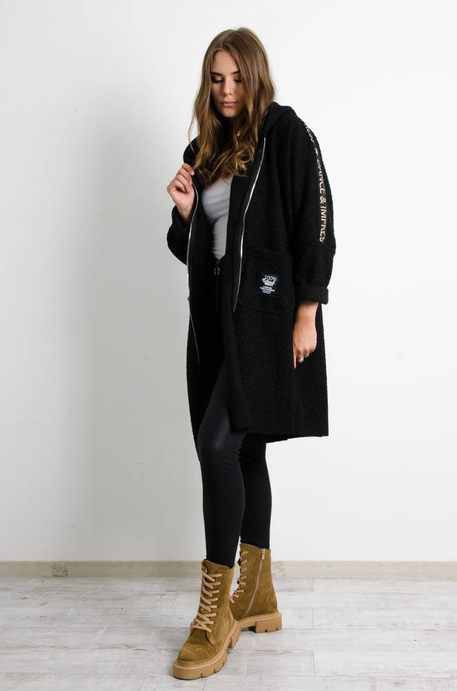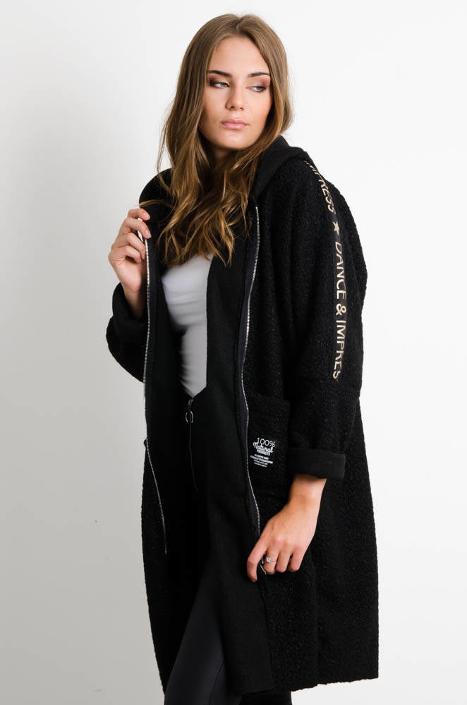 CZARNY PŁASZCZ OVERSIZE Z KAPTUREM