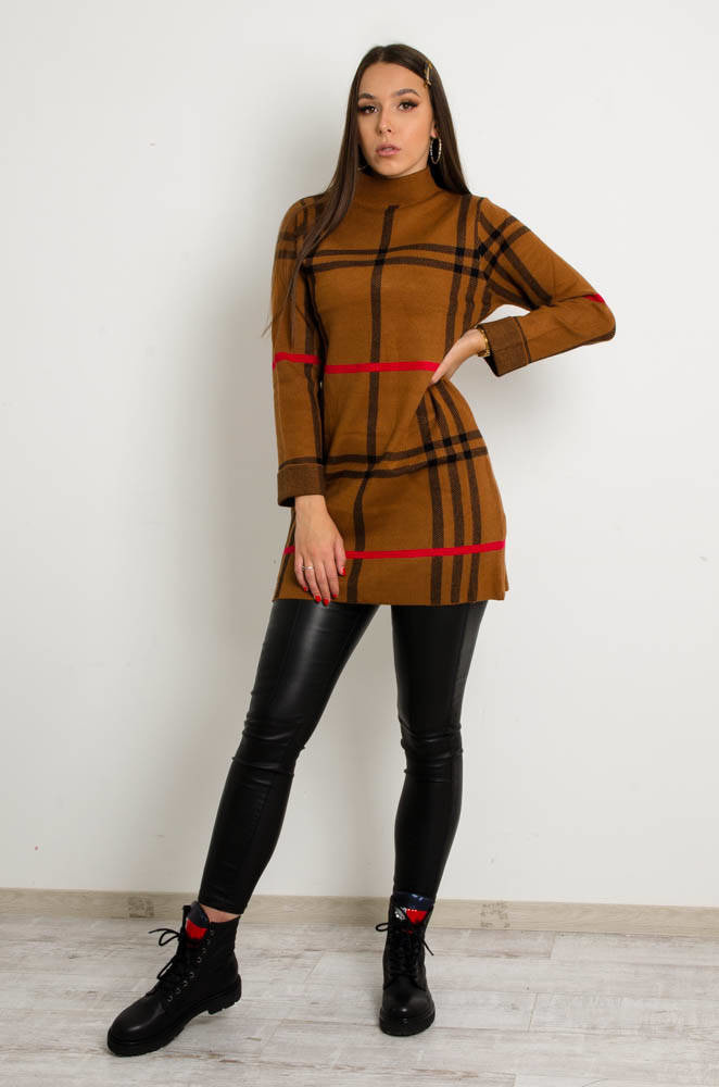 BRĄZOWA SUKIENKA W KRATĘ