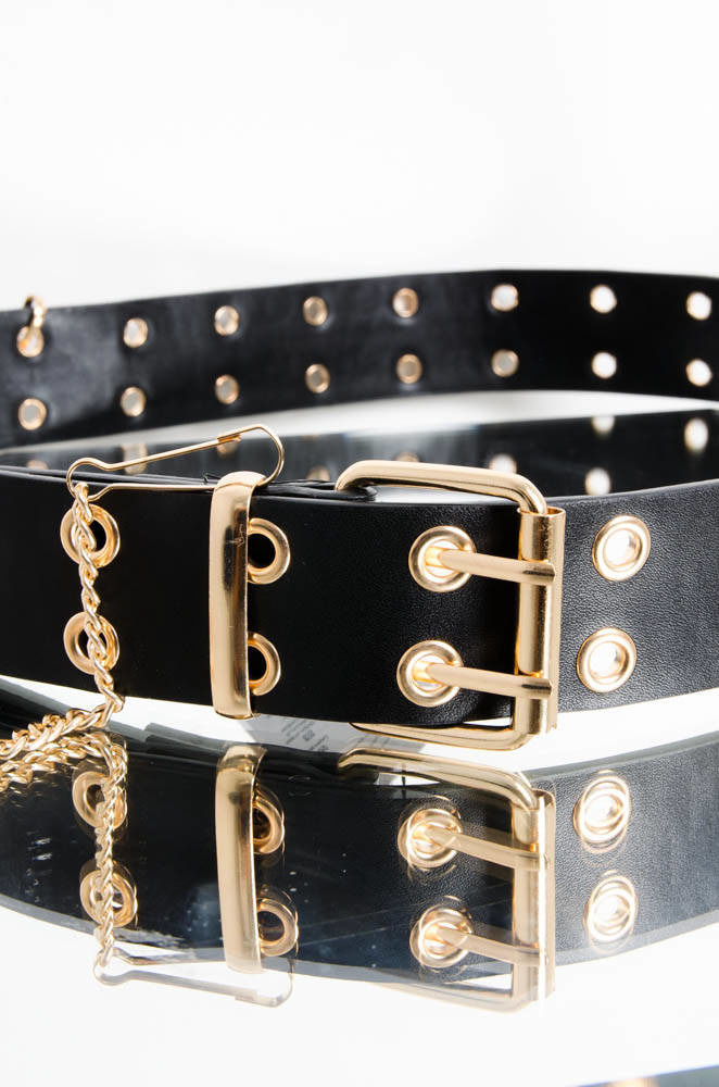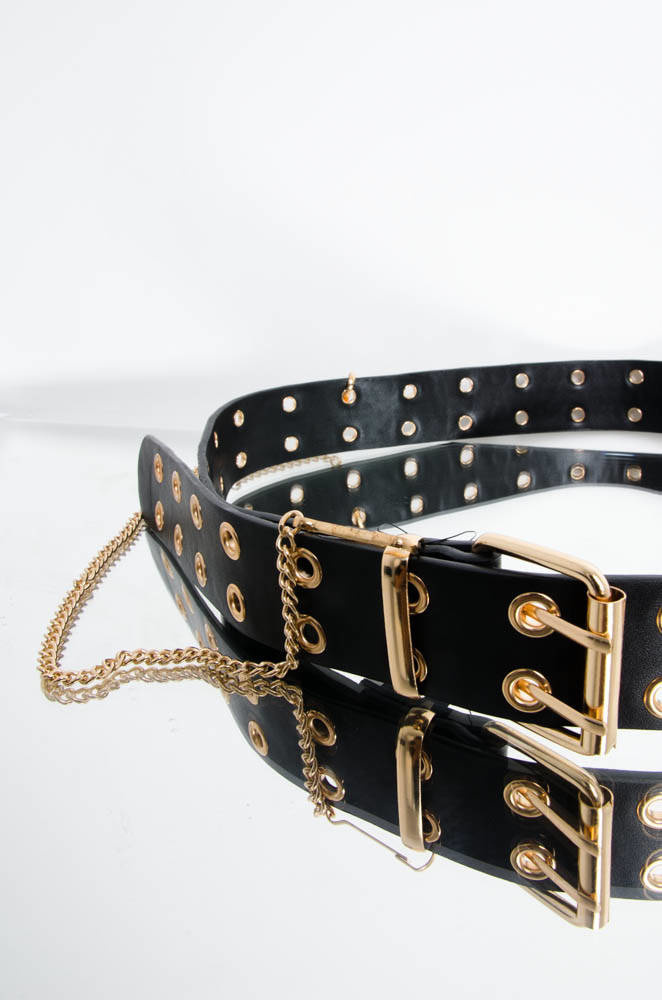 CZARNY PASEK Z OZDOBNYMI KÓŁKAMI I ŁAŃCUSZKIEM