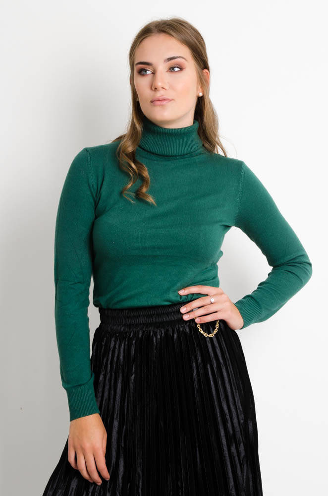 ZIELONY GŁADKI GOLF Z PRĄŻKOWANYM ZAKOŃCZENIEM