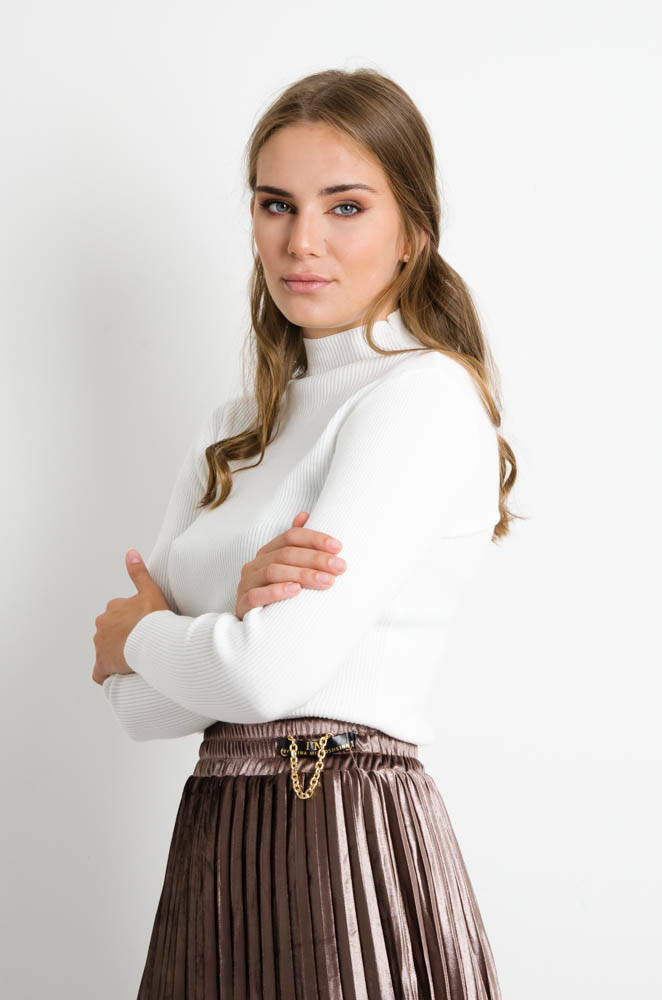 BIAŁY SWETEREK PRĄŻEK Z PÓŁGOLFEM