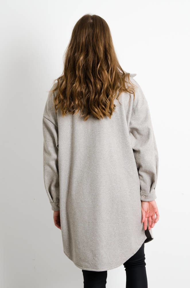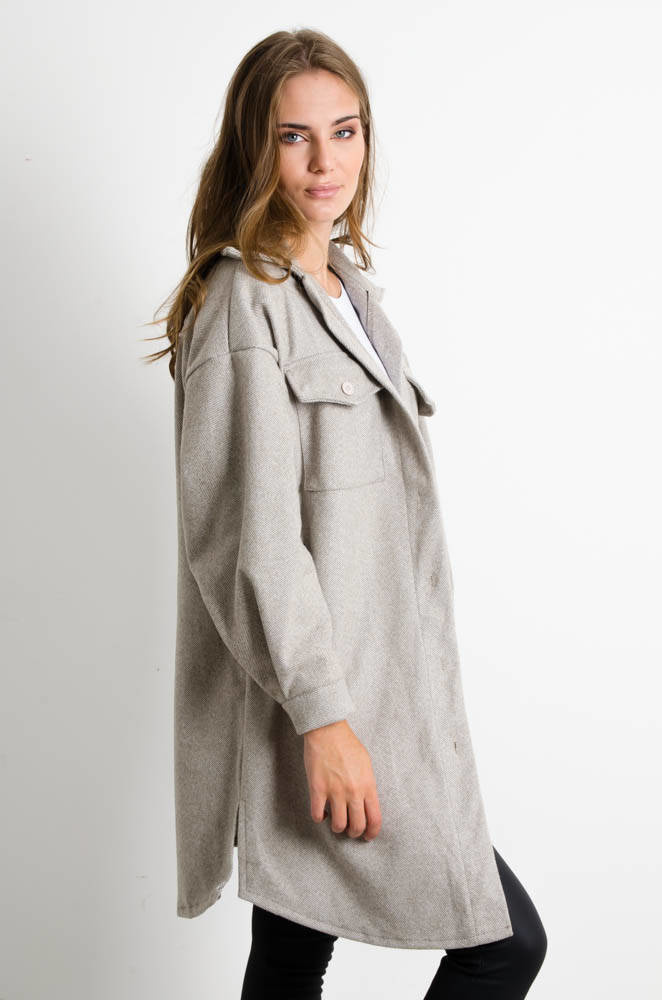 SZARY DŁUGI PŁASZCZ KOSZULOWY