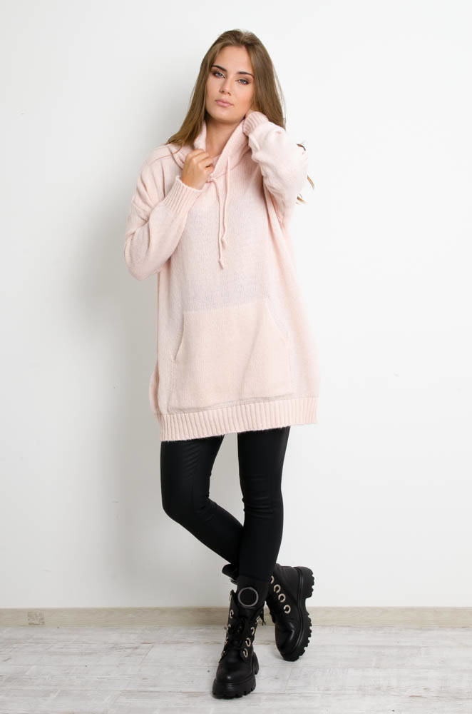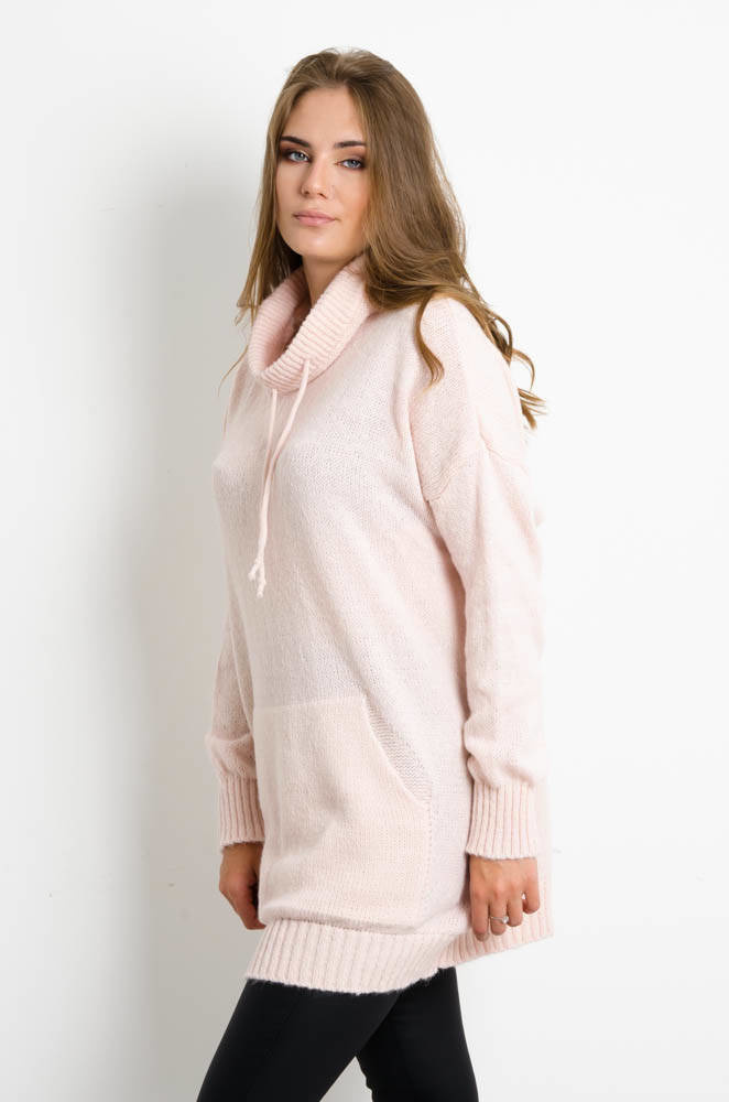 DŁUGI RÓŻOWY SWETER Z KIESZENAMI