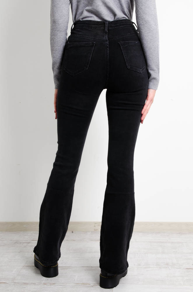 CZARNE SPODNIE JEANSOWE FLARED JEANS- WYSOKI STAN