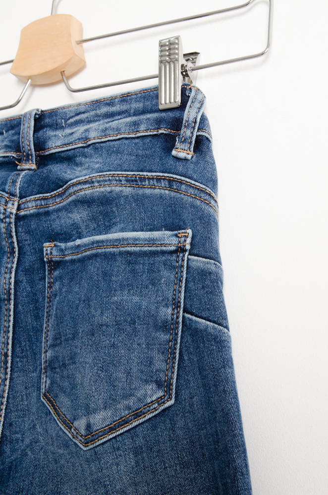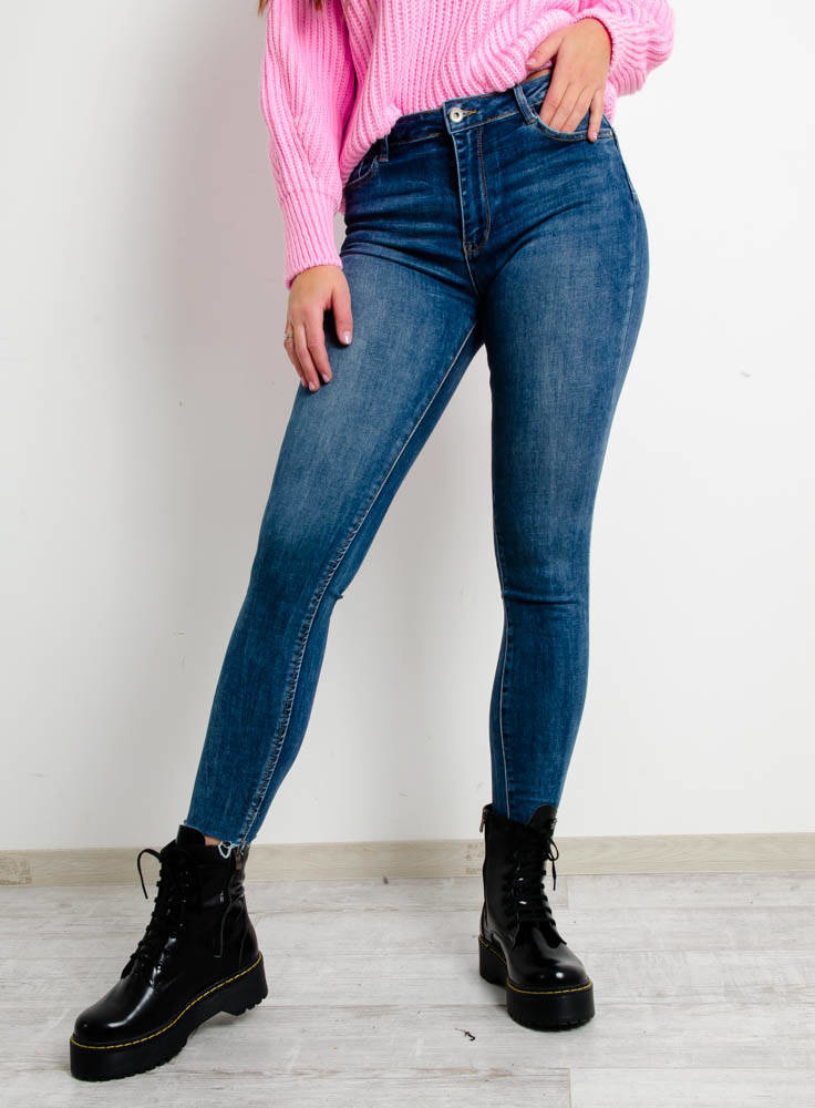 Jeansy z funkcją stretchu, który trzyma i modeluje talię, uda i pośladki oraz zachowuje kształt jeansów. Modelujące przeszycia- PUSH UP. Wysoki stan, rozporek na suwak i guzik. Obcisłe nogawki.