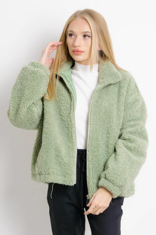 ZIELONA KURTKA Z FUTERKA ZE STÓJKĄ