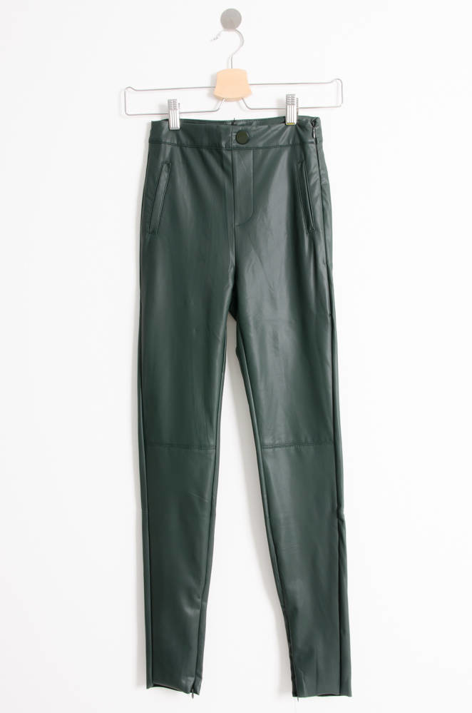 ZIELONE SPODNIE Z IMITACJI SKÓRY Z WYSOKIM STANEM