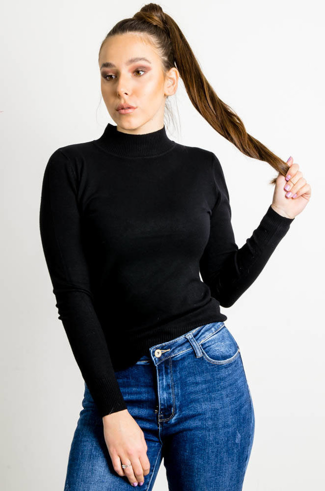 CIENKI CZARNY SWETEREK Z PÓŁGOLFEM