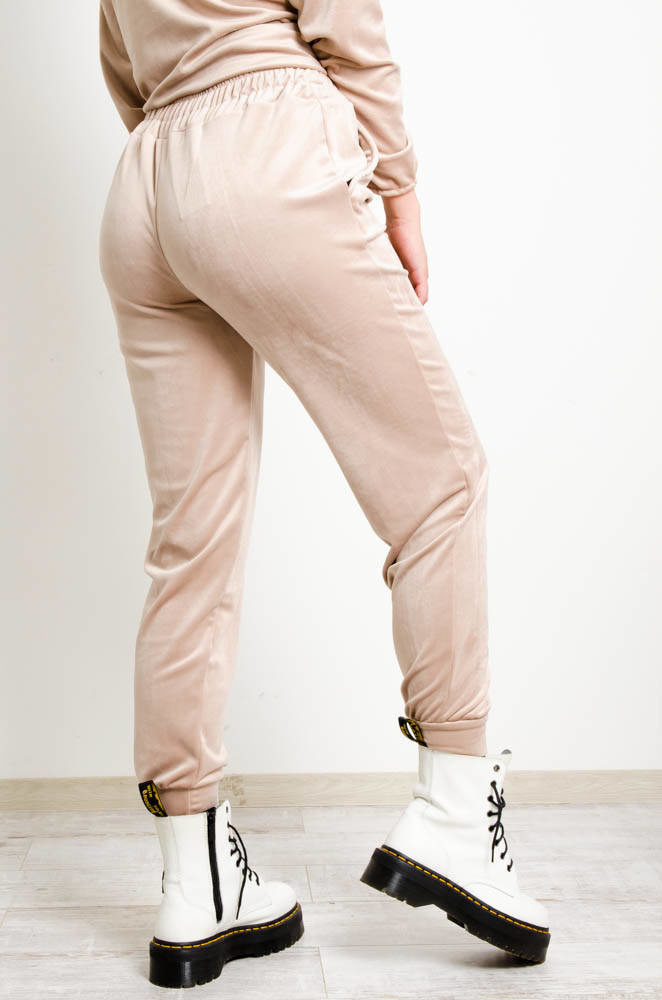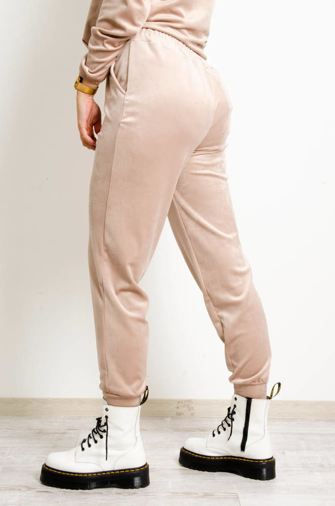 BEŻOWE WELUROWE SPODNIE DRESOWE