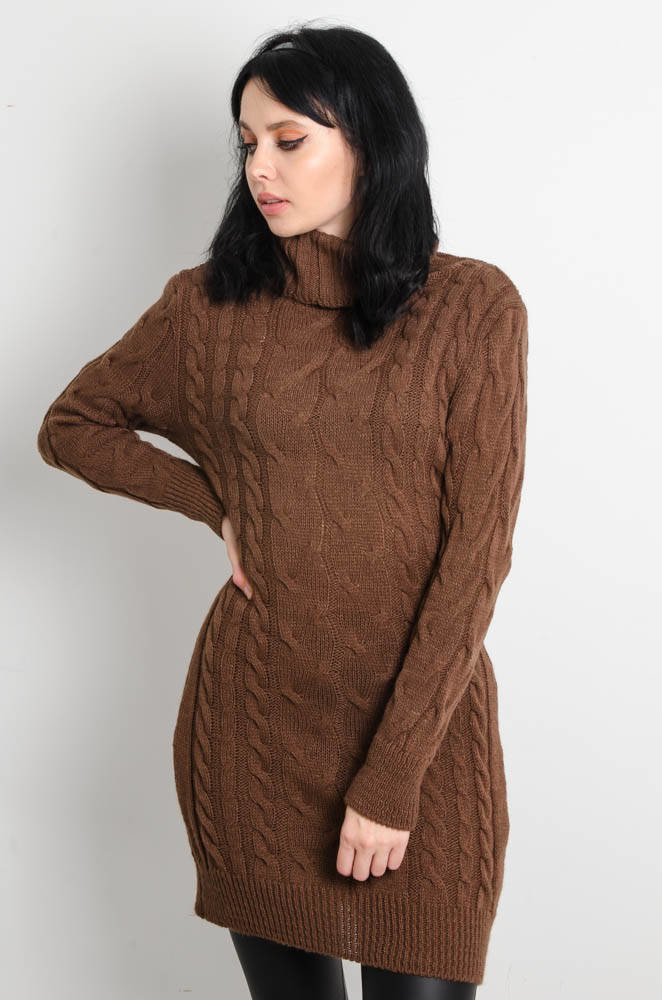 BRĄZOWA SWETERKOWA SUKIENKA Z GOLFEM