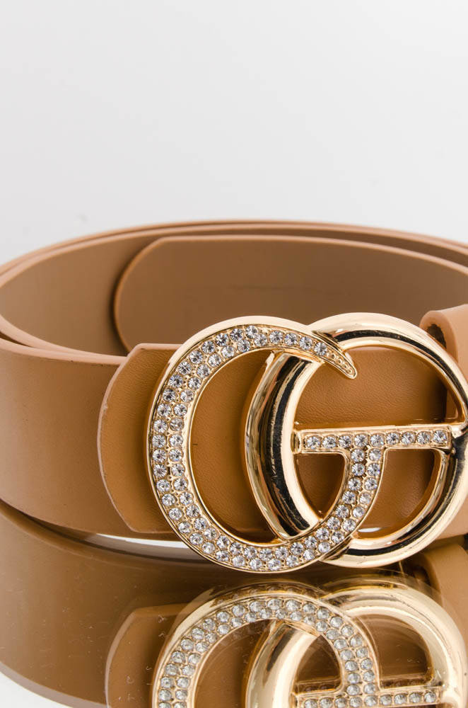 BRĄZOWY PASEK CG- ZŁOTE ZAPIĘCIE Z CYRKONIAMI