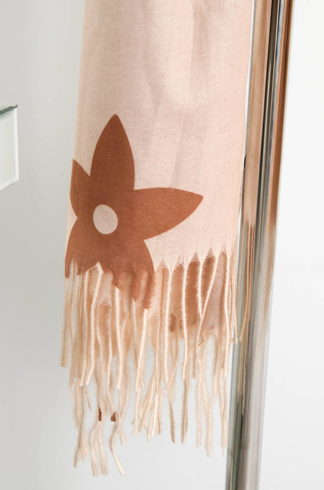 BEŻOWY SZAL Z  CZARNYM WZOREM