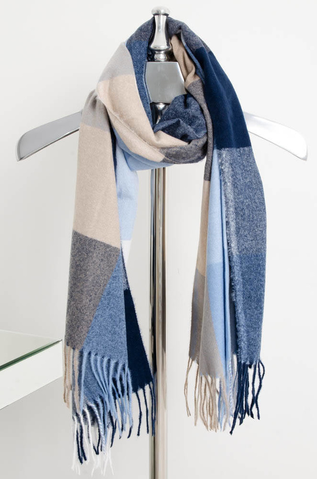 GRANATOWY SZAL W KRATĘ Z FRĘDZLAMI