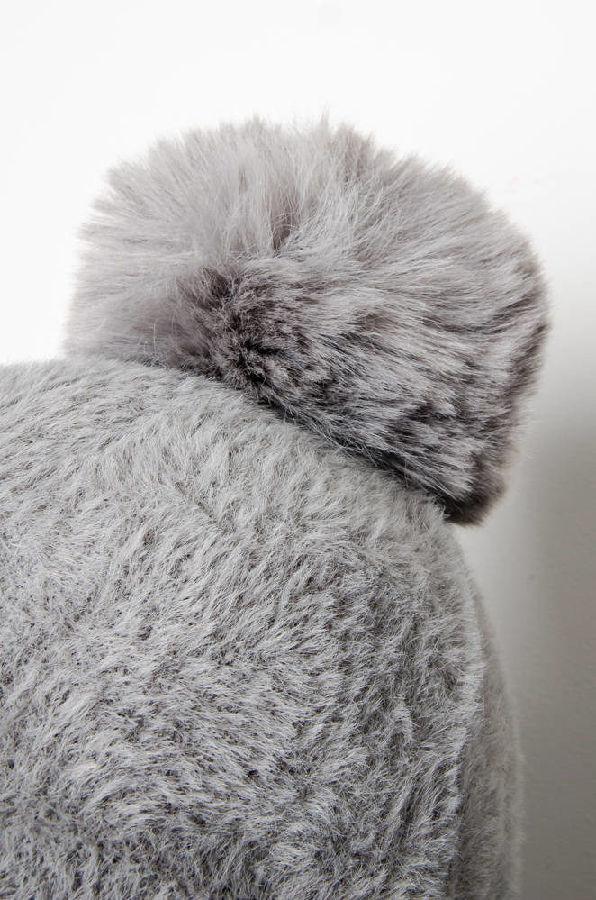 SZARA CZAPKA ALPAKA Z POMPONEM.