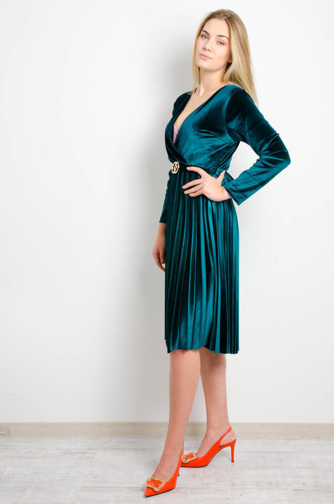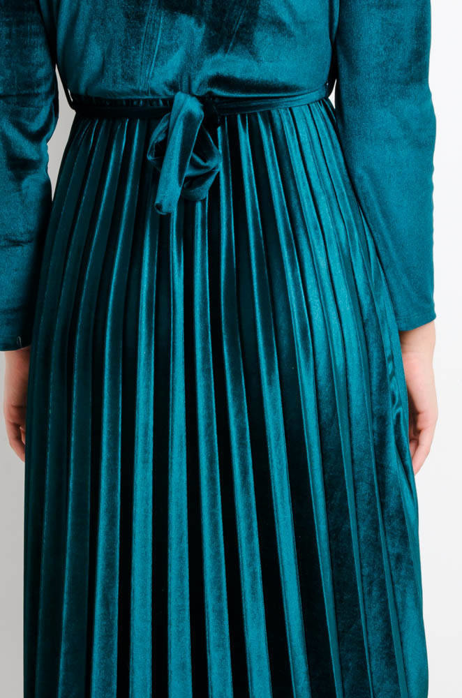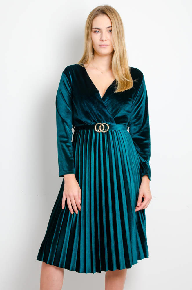ZIELONA WELUROWA SUKIENKA Z PLISOWANIEM
