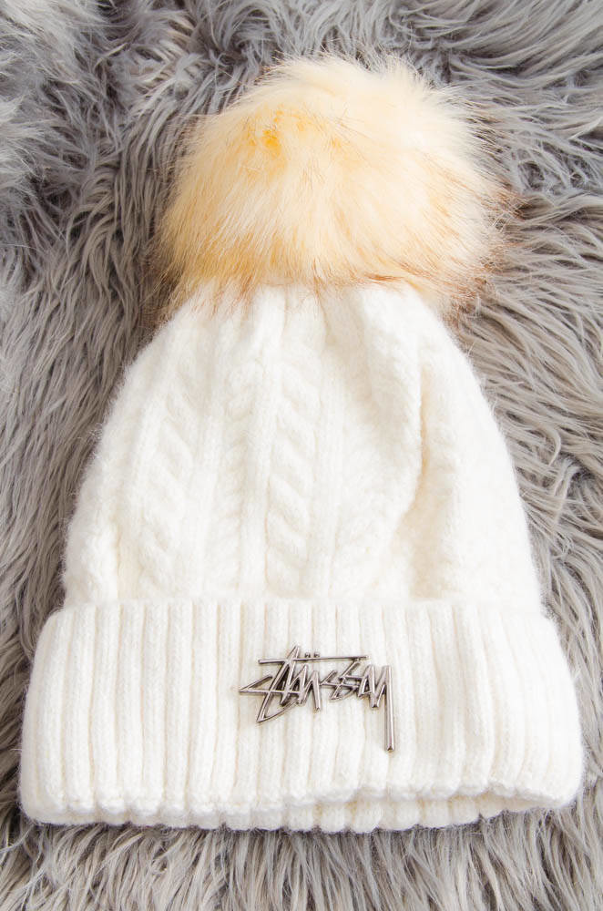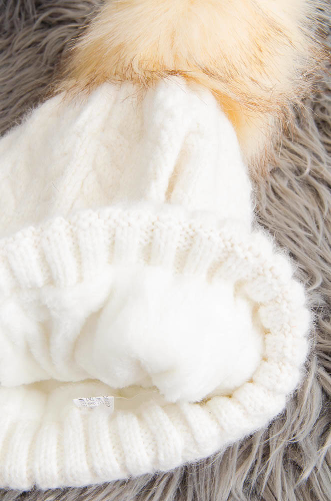 BEŻOWA OCIEPLANA CZAPKA Z POMPONEM