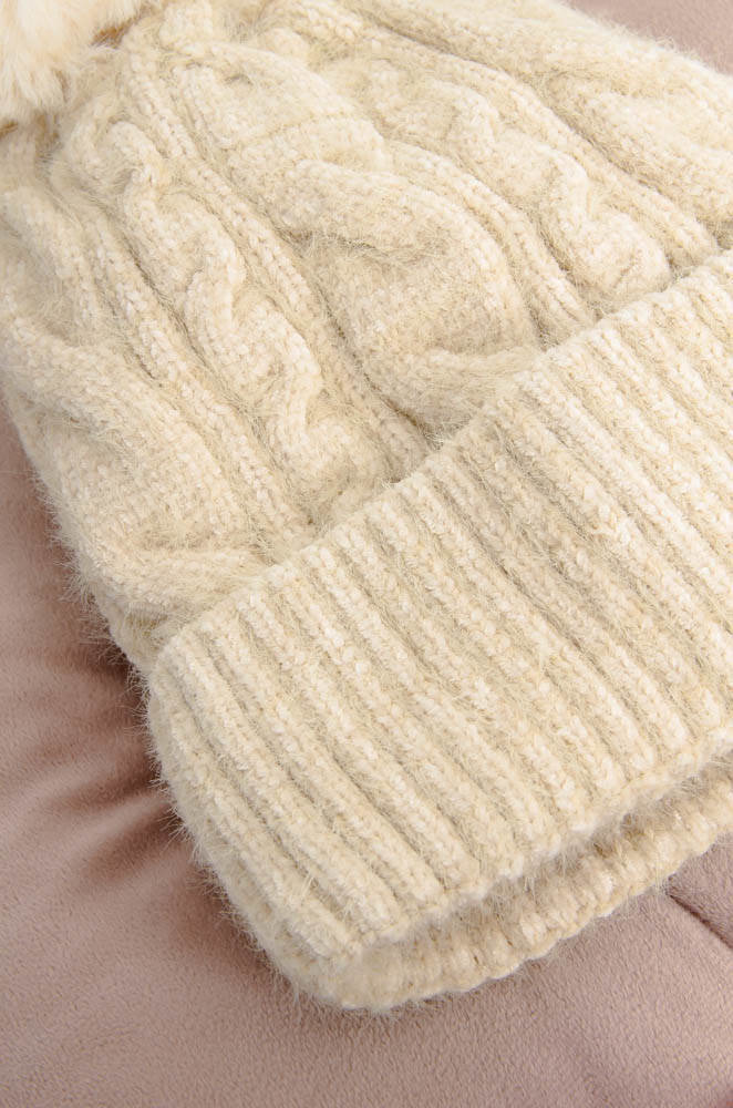 BEŻOWA OCIEPLANA CZAPKA Z POMPONEM
