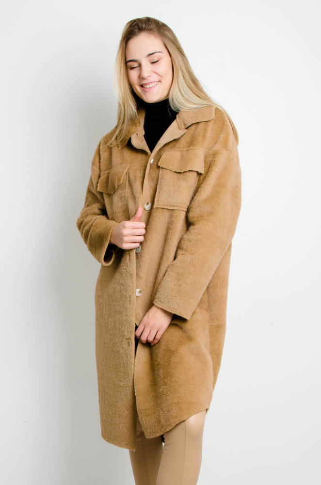 BRĄZOWY PŁASZCZ ALPAKA Z KIESZONKAMI