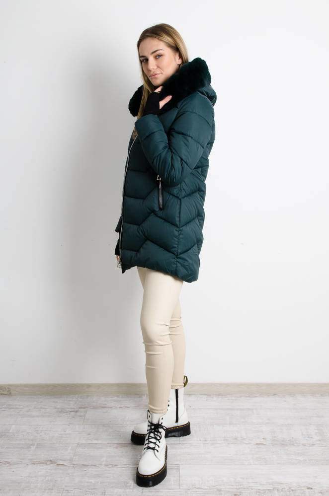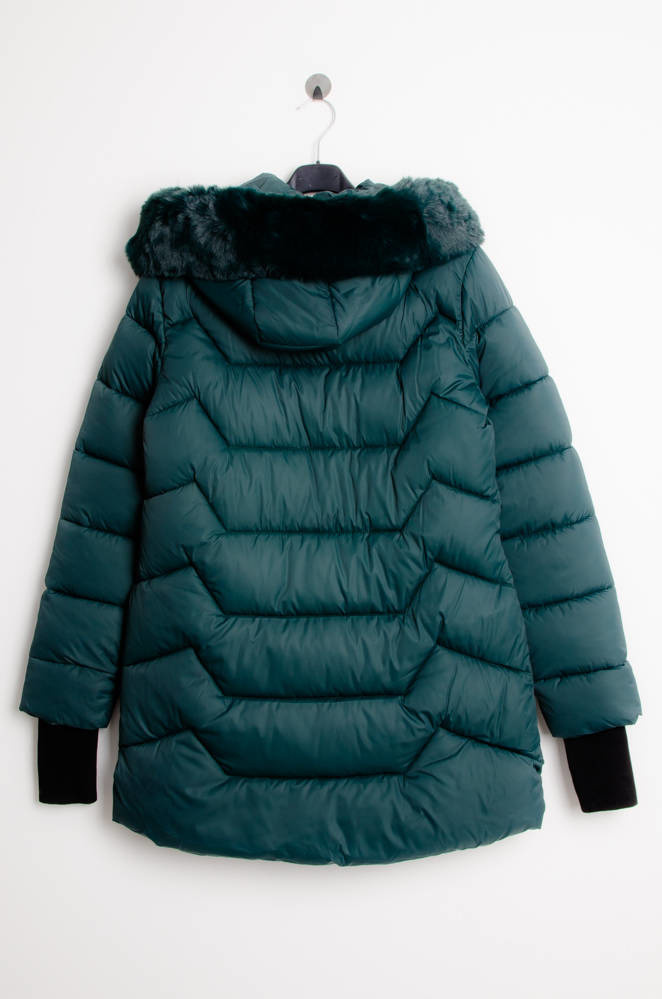 ZIELONA MATOWA KURTKA Z FUTERKIEM PRZY KAPTURZE