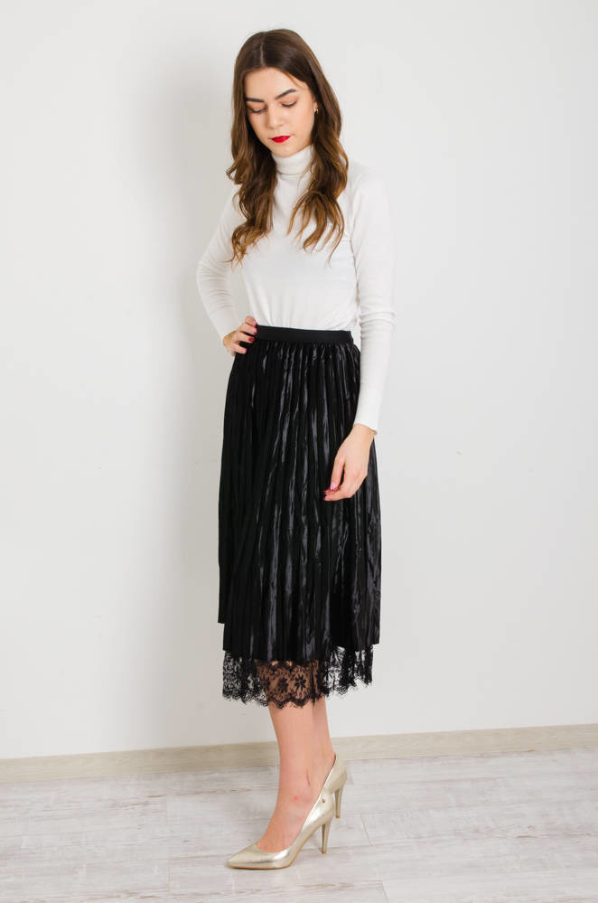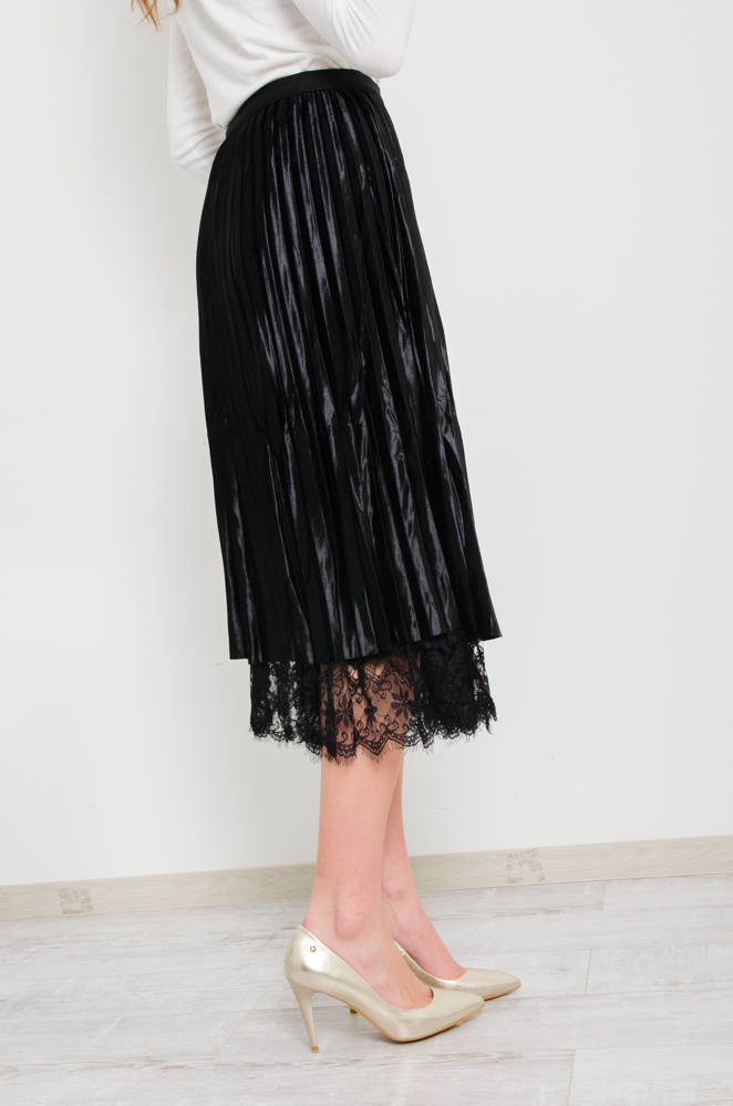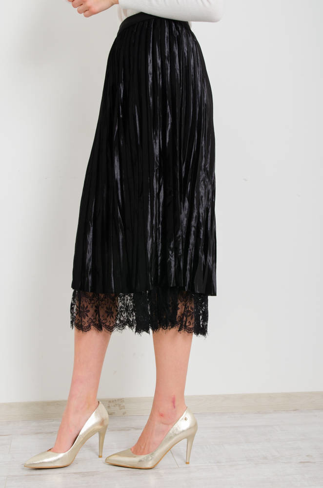 CZARNA DWUSTRONNA SPÓDNICA,WELUR -TIUL- KORONKA