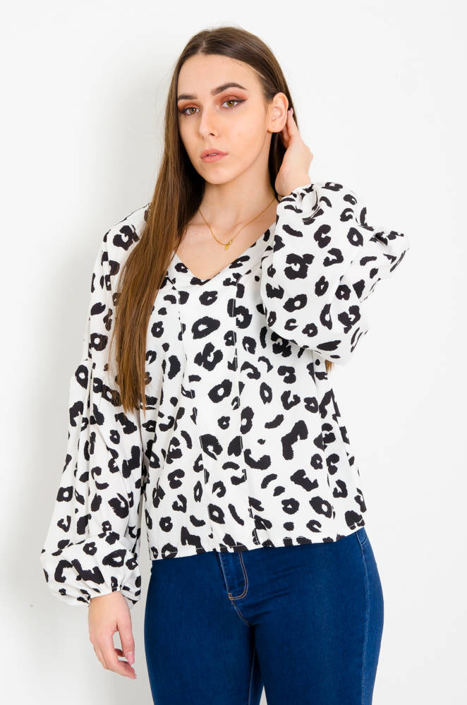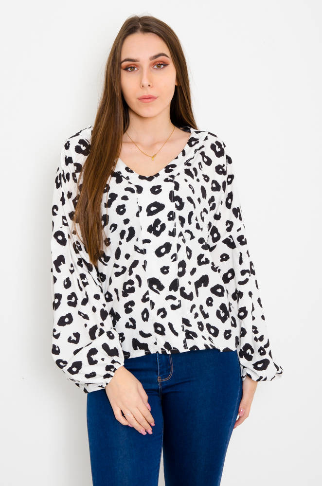 BIAŁA BLUZKA W CĘTKI Z DEKOLTEM W SZPIC