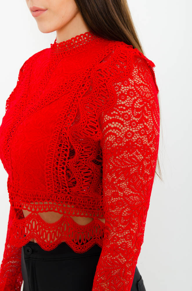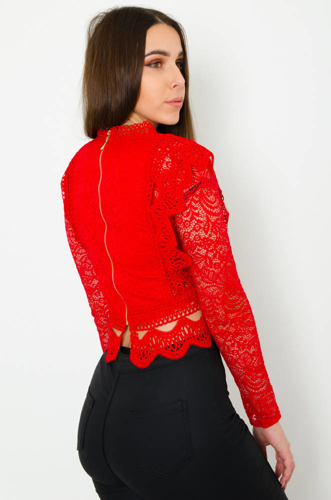 CZERWONA KORONKOWA BLUZKA Z ZAMKIEM NA PLECACH