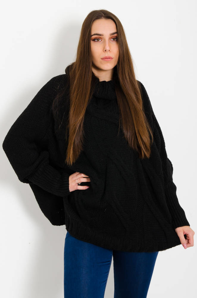 CZARNY ASYMETRYCZNY SWETER- NIETOPERZ