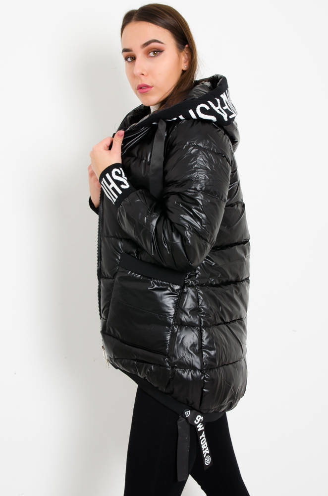 CZARNA PIKOWANA KURTKA ZIMOWA Z OZDOBNYMI WSTAWKAMI
