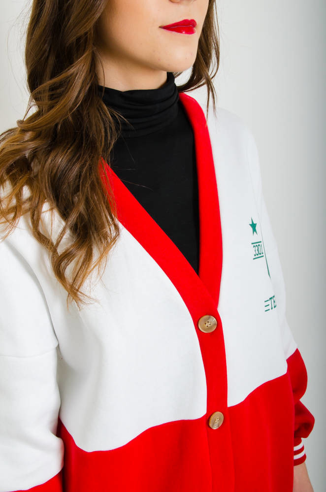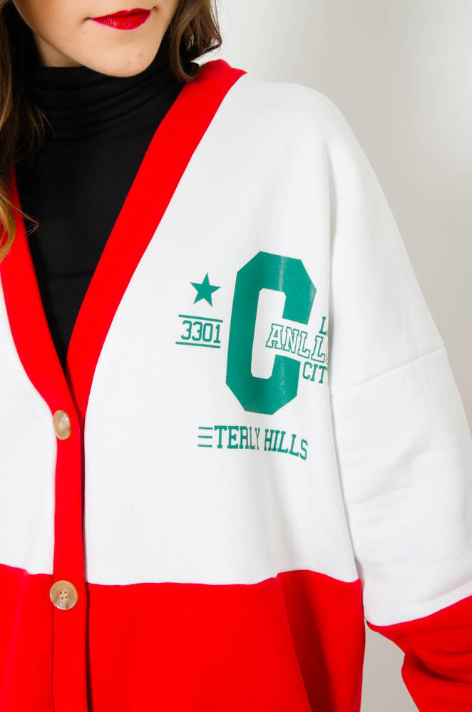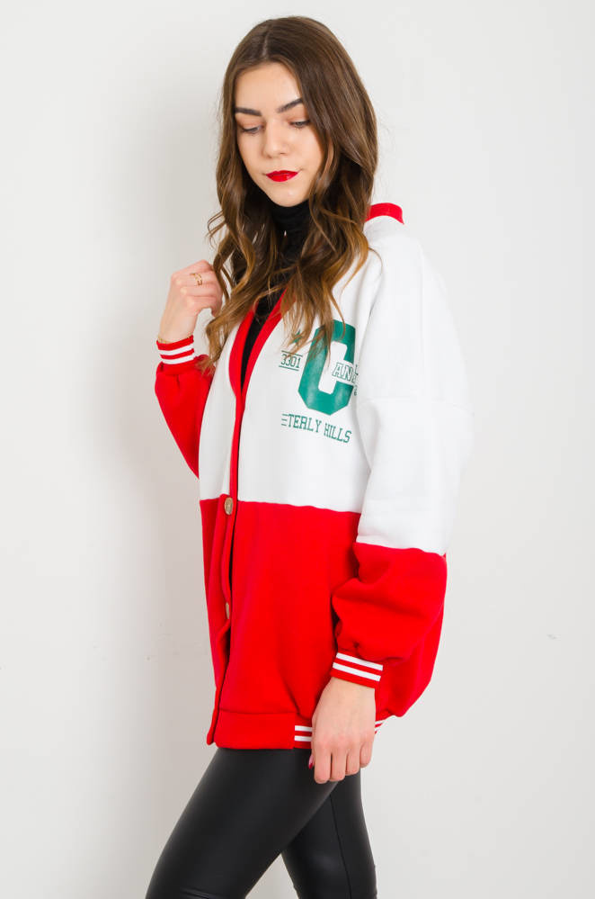 CZERWONO-BIAŁA BLUZA BEJSBOLÓWKA ZAPINANA NA GUZIKI