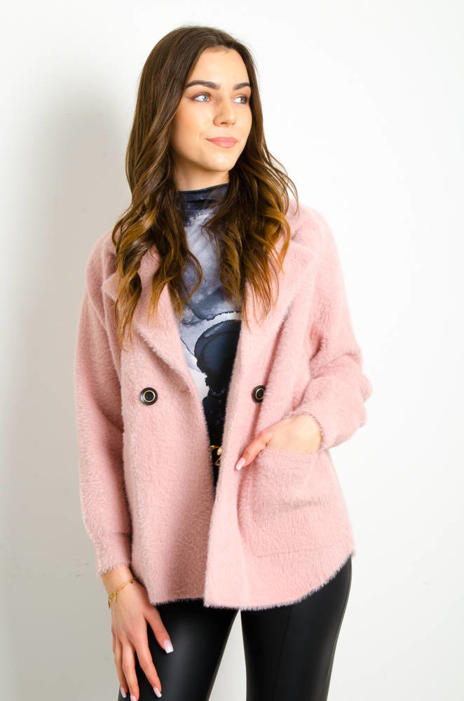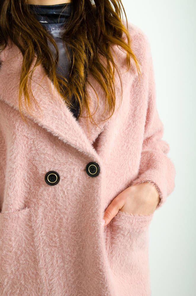 KURTKA WEŁNIANA ALPAKA KRÓTKA- RÓŻOWA