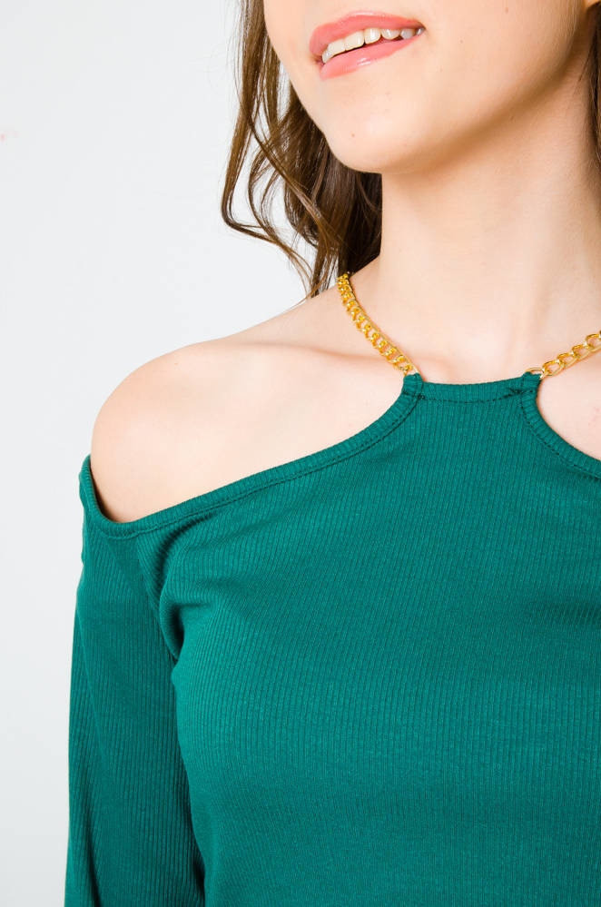ZIELONA PRĄŻKOWANA BLUZKA Z ŁAŃCUSZKIEM