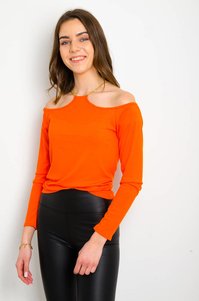 POMARAŃCZOWA PRĄŻKOWANA BLUZKA Z ŁAŃCUSZKIEM
