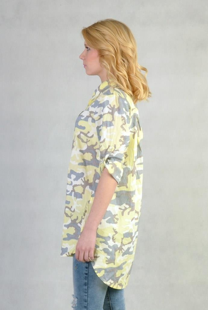 Koszula w militarnym stylu, uszyta z dobrej jakości, lekkiego materiału, o prostym swobodnym fasonie, świetnie tuszującym ewentualne mankamenty sylwetki. Rękaw roll-up.