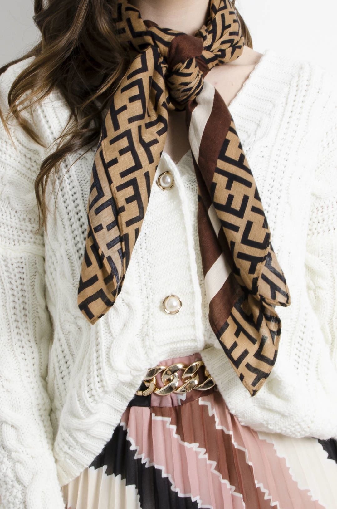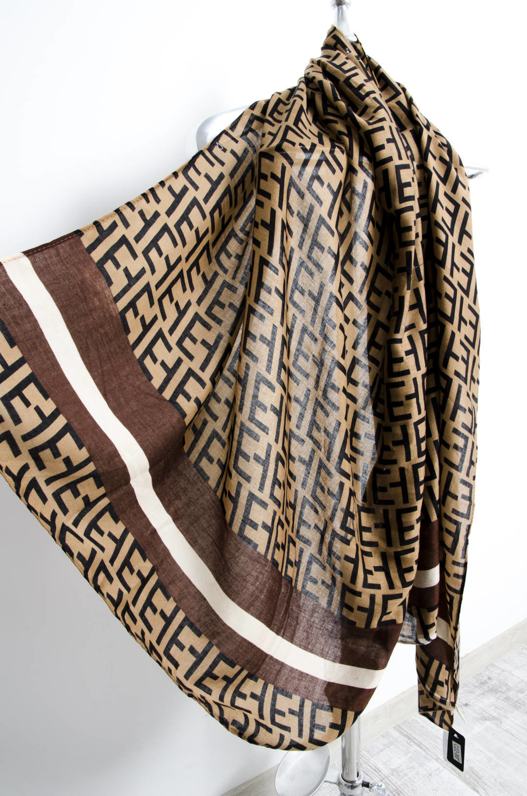 BRĄZOWO-CZARNY SZAL WE WZORY