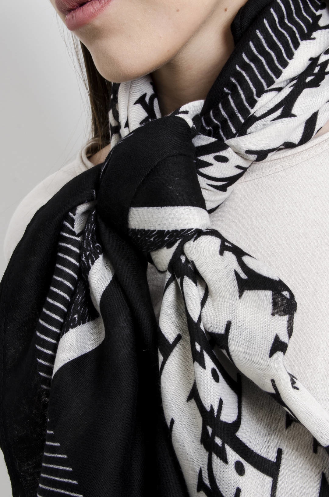 SZAL BIAŁO-CZARNY WZORZYSTY