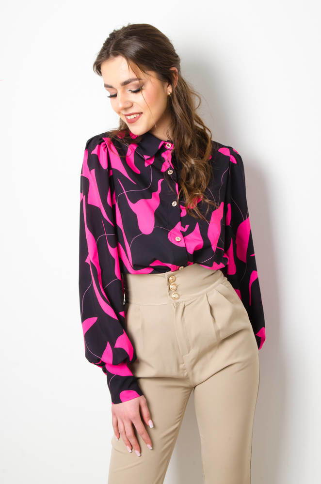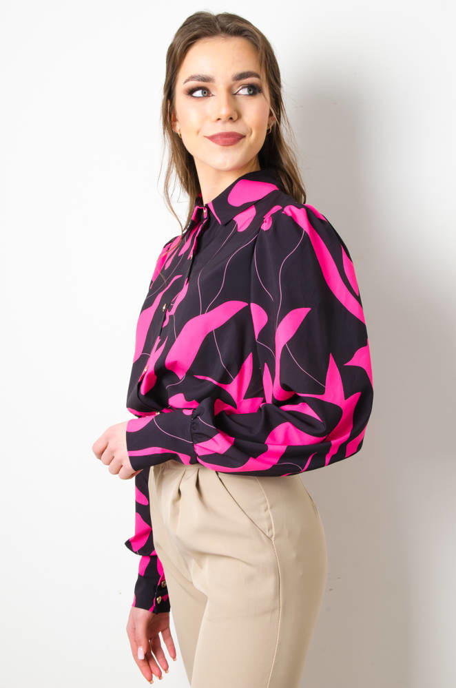 KOSZULA WZORZYSTA Z GUZIKAMI- CZARNO-RÓŻOWA